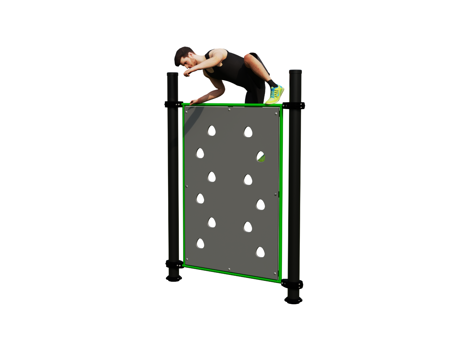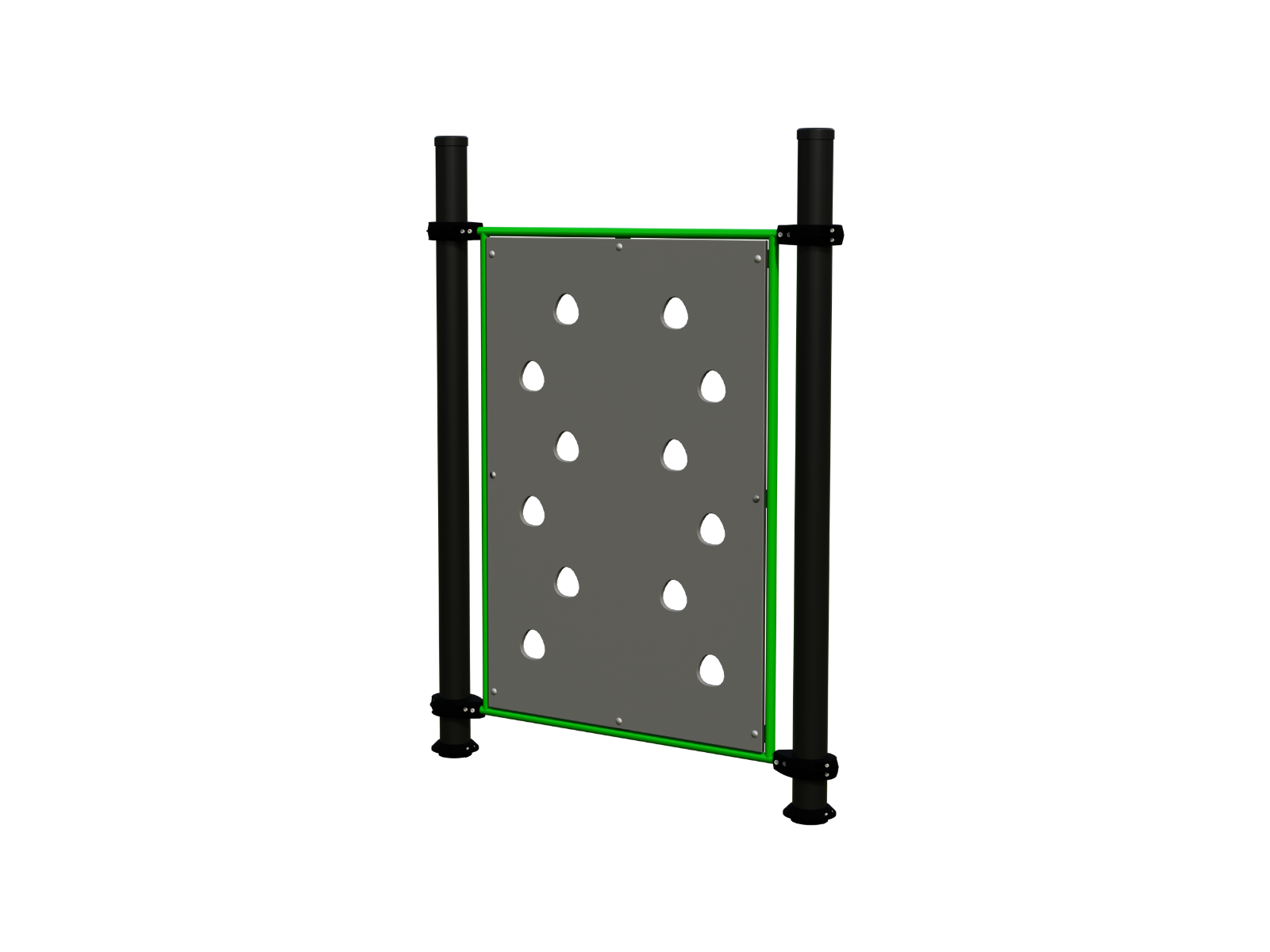 A Mászófal 1500 prémium minőségű, porszórt acélból készült, időjárásálló és korrózióvédett felületkezeléssel, így hosszú távú kültéri használatra tervezett, alacsony karbantartási igény mellett.